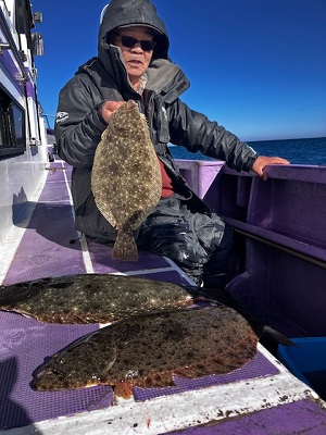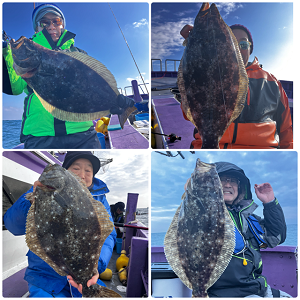 | ------------------------------- 【午前釣果】【1月4日日曜日】【午前ヒラメ釣果】 2026年 初釣り好調スタ-トになりました。 釣果0【1名】~6枚 サイズ0.5~6k ほとんどが2k以上の良型でした。 |